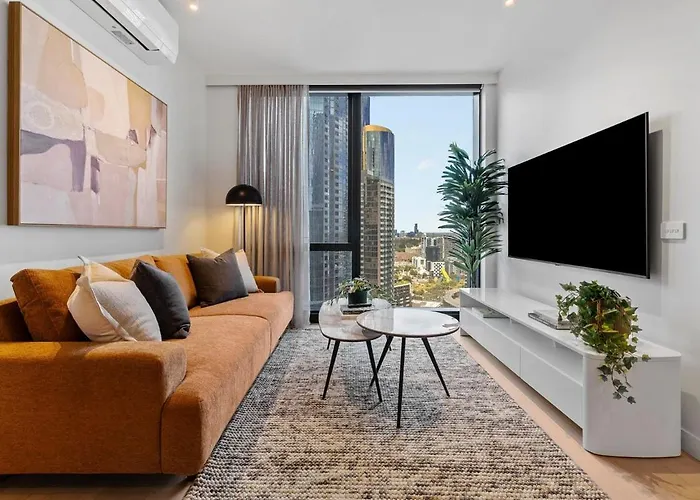 The Queensbridge Building New 2Bd Designer Suite メルボルンは戦争慰霊館から徒歩で25分に位置し、都市の景色を一望できます。 プールを提供するホテルは、クラウンカジノ&娯楽施設とても近くです。